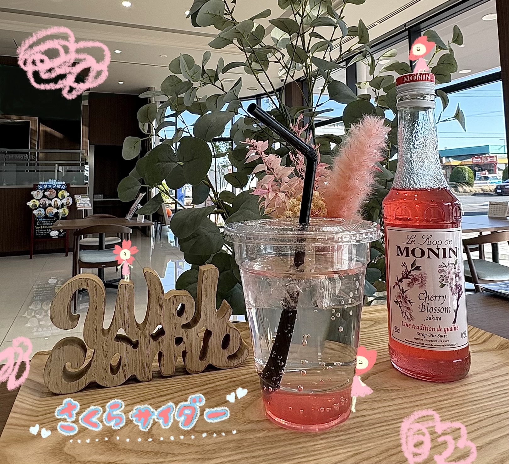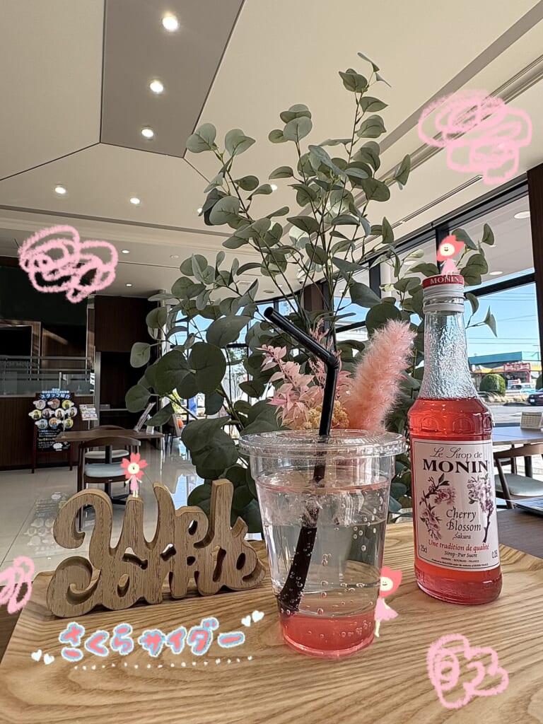 甘いさくらシロップとサイダーがマッチしたこの時期にピッタリなドリンクでございます😚🥤